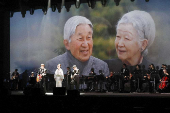 第2部にあたる祝賀コンサートではMISIA(40)が「明日へ」、松任谷由実が「春よ、来い」、人気デュオゆずの2人が、2004年のアテネ五輪で話題となった「栄光の架橋」を披露。音楽プロデューサー松任谷正隆氏(67)が陛下が詠まれた和歌に曲をつけた「御製(ぎょせい)」をゆずが、皇后さまが詠まれた和歌に曲を付けた「御歌(おんうた)」を和服姿のユーミンが歌い上げると、会場は大いに盛り上がった。ゆずの北川悠仁(42)は終了後、自身のインスタに出演した4人の写真をアップし「素晴らしい舞台に立たせていただいた。とても光栄です」と記した。