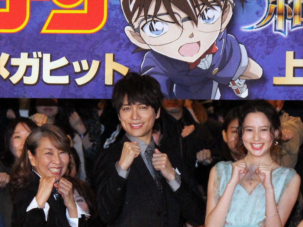人気アニメ映画シリーズの第23作「名探偵コナン 紺青の拳」の公開記念舞台あいさつが13日、都内で行われ、ゲスト声優の山崎育三郎(33)、河北麻友子(27)らが登壇した。