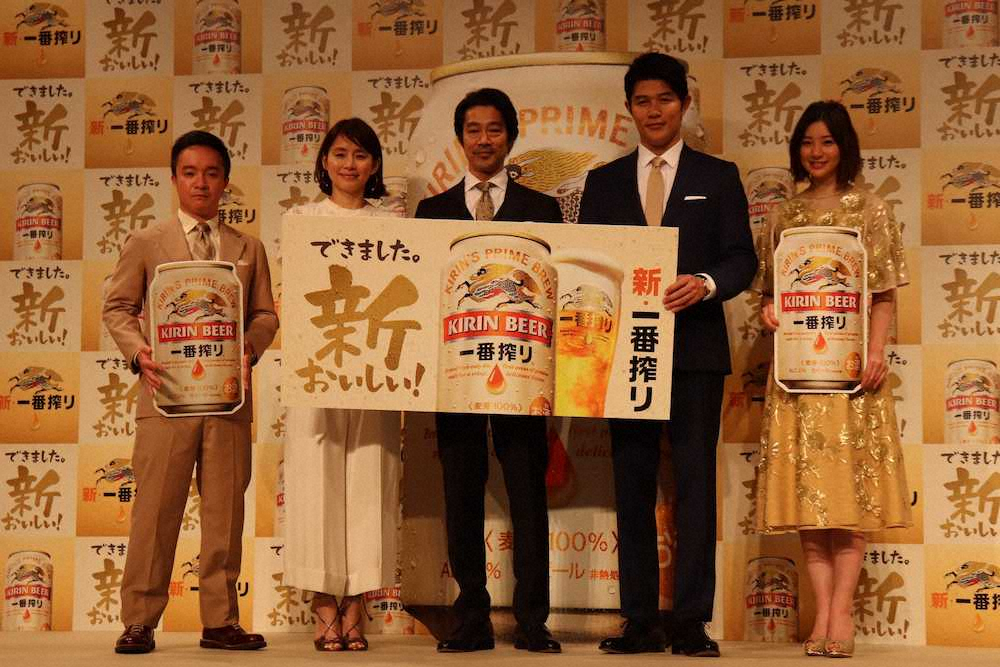 俳優の堤真一(54)、鈴木亮平(36)、濱田岳(30)、女優の石田ゆり子(49)、足立梨花(26)が22日、都内で行われたキリンビールの「新おいしい!新・一番搾り完成体験会」に出席した。5人は商品のファン約100人とともにリニューアルした商品を片手に乾杯。「おいしくなった!」と声を合わせた。商品を飲みたい瞬間について聞かれ、鈴木は「北海道の大自然の絶景を眺めながら」とうっとり。濱田に「そこにサーバー背負って行ってるんですか」と突っ込まれると「行ってるね~。知床に。あと新幹線で窓から富士山が見える。その時にプシュッっとやってもらいたい」と話した。