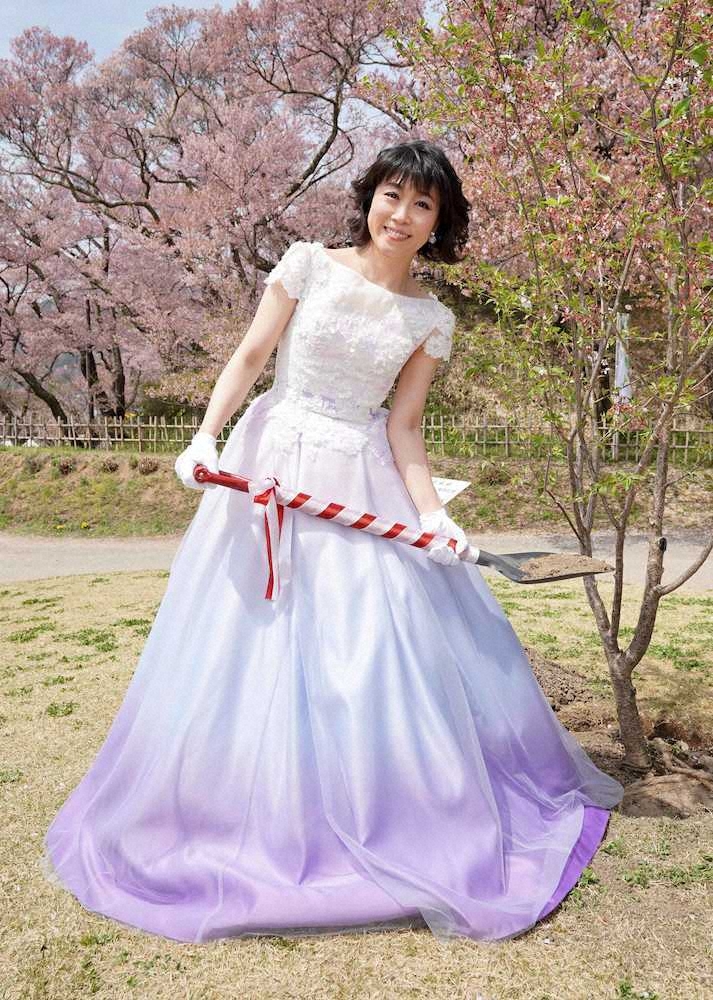 水森かおり“令和でも紅白”、長野・伊那市で桜の若木植樹