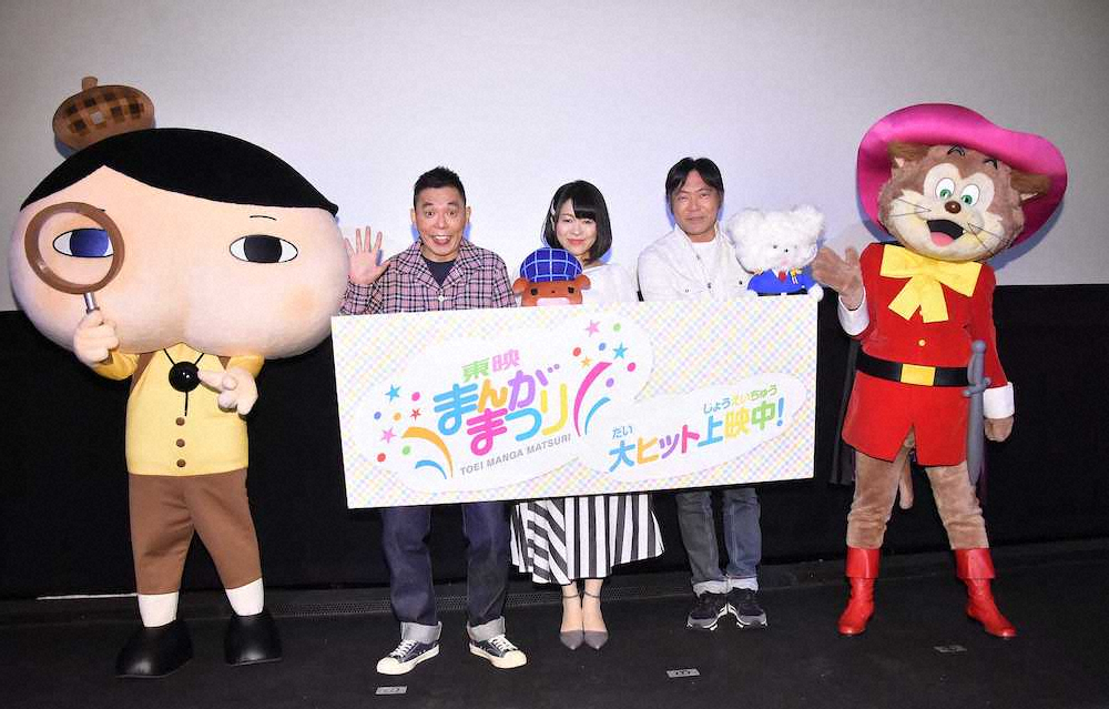 「東映まんがまつり」初日舞台あいさつに出席した(左から)太田光、齋藤彩夏、渡辺いっけい