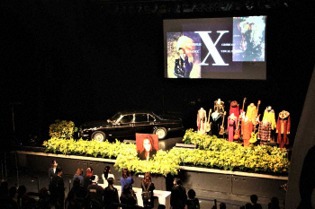 黄色を基調にした花畑のように飾られた祭壇には、hideさんが生前着用してきた衣装や愛用のギター、こだわって特注した愛車「ジャガー・デイムラー ダブル シックス」を展示。ステージ上に設置された大型スクリーンには、幼少期の姿や様々な表情を見せる約100枚もの写真やヒストリー映像が映し出された。hideさんの愛用していた衣装やパソコンの一部を収めたスケルトンスピーカーを初使用した演出もされ、ファンはガーベラの花を1本ずつ手向けながら、涙をぬぐった。
