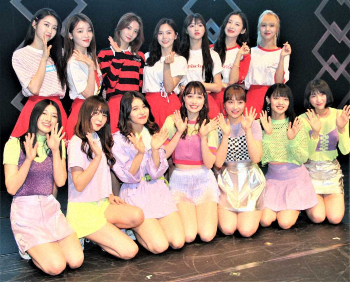 「1st ファンミーティングツアー2019 ~PICNIC~」を開催した「OH MY GIRL」メンバー(後列左から)ジホ、スンヒ、ビニ、ヒョジョン、ユア、アリン、ミミ、「Chuning Candy」のメンバー(前列左から)琴音、千夏、ソフィー、LILI、ゆうり、優美香、愛子