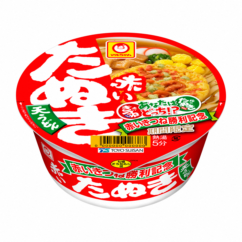 昨年「赤いきつねうどん」の発売40周年を記念した「赤いきつねうどん」と「緑のたぬき天そば」の食べ比べ投票キャンペーンを実施。18年10月4日から19年1月31日までの投票で、「赤いきつねうどん」が29066票、「緑のたぬき天そば」が24797票を得て「赤いきつね」が勝利した。その結果、「赤いきつね」が“マニフェスト”として掲げていた「赤いたぬき天うどん」が実現。期間限定で販売する。