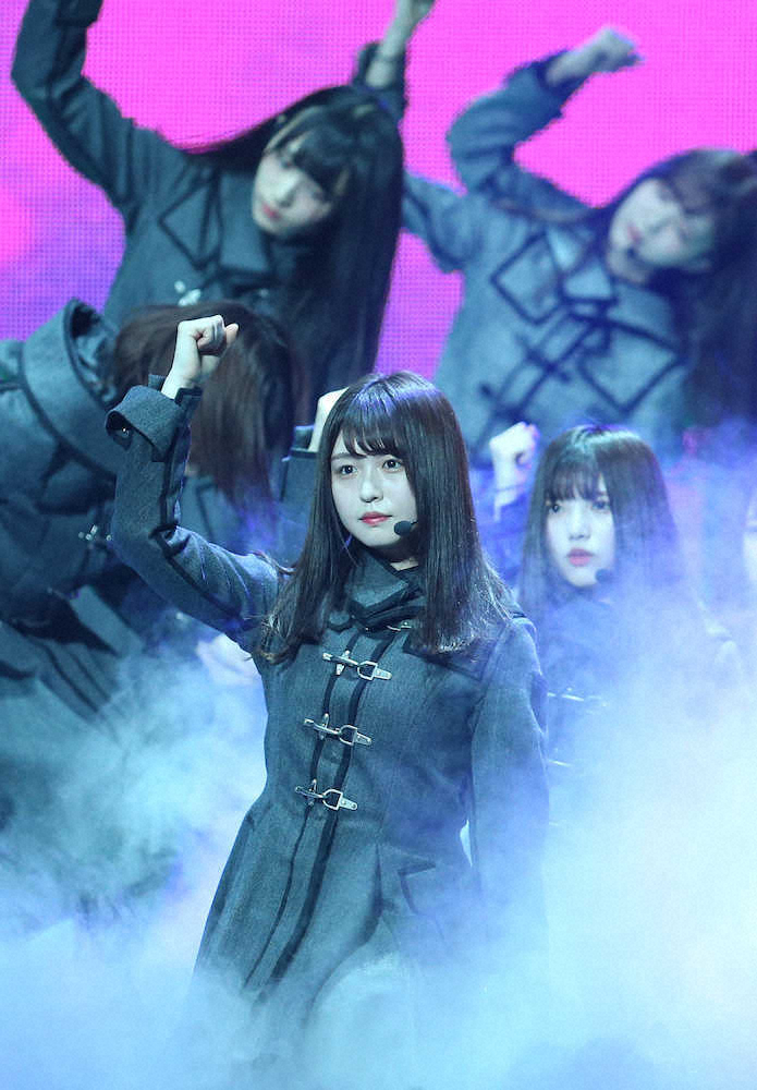 センター平手友梨奈(17)を“主人公”とした音楽劇のようなステージ。若者の不安や悩み、本音を代弁する曲の数々は、アイドルらしからぬ独特の陰鬱(いんうつ)さで満ちていた。トークは1回挟んだだけで、ノンストップで本編90分間をやり切った。