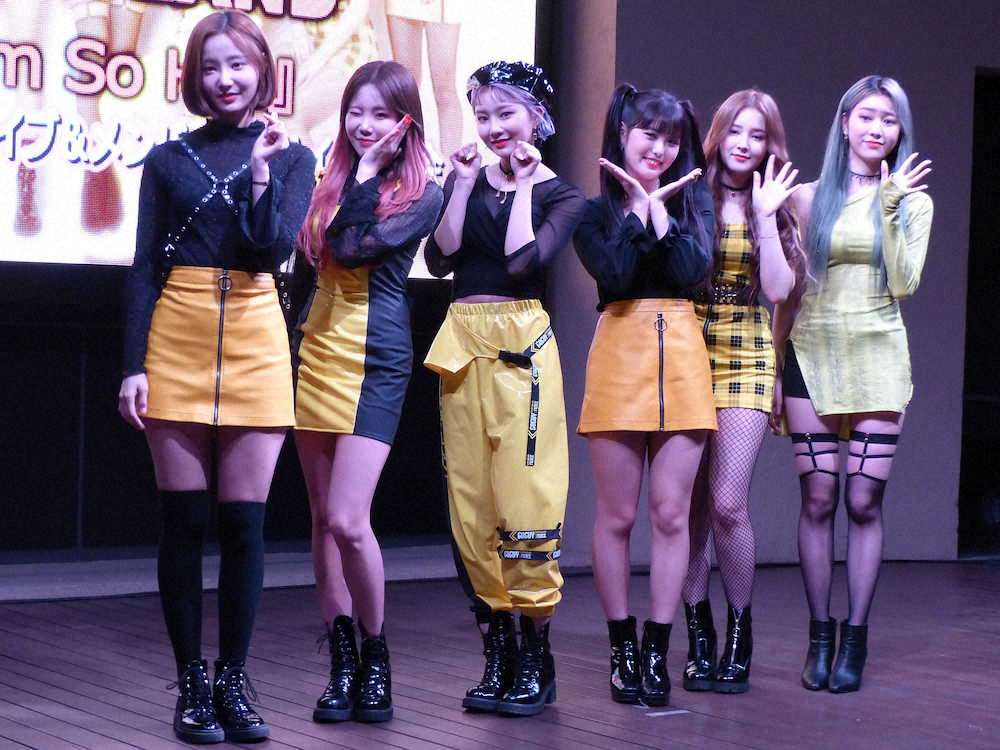 昨年日本デビュー。現在7人で活動中だが、この日は高熱で欠席のナユン(20)を除く6人で登場。2000人のファンが詰めかける中、オリコンデイリーチャート初登場1位を獲得した同曲などを熱唱した。ジェイン(21)は「あなたのハート、撃ち抜いちゃうぞ!」と“ホット”な日本語であいさつ。歓声を浴びていた。