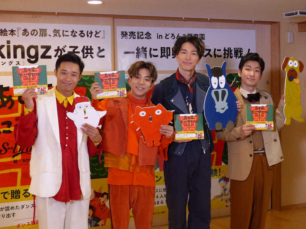 4人組パフォーマンスグループ「s**t kingz(シットキングス)」が16日、東京・中目黒どろんこ保育園で絵本「あの扉、気になるけど」の発売記念イベントを行った。
