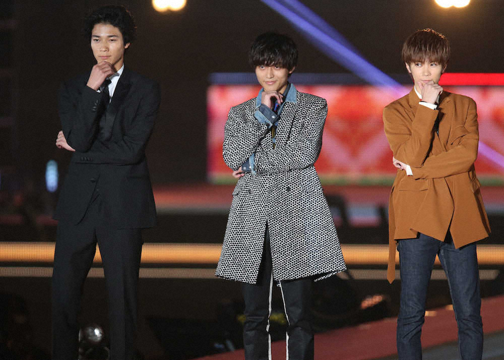 この日は、17日に公開された映画初主演作「うちの執事が言うことには」(久万真路監督)の公開記念舞台あいさつを都内で終え、神宮寺勇太(21)、清原翔(26)とともに幕張へ駆けつけた。出演は事前に告知されておらず、場内ステージ後方のスクリーンがせり上がり、3人が登場すると、この日一番の大歓声が上がった。休憩していた大勢の女性ファンが、慌てて客席に戻る一幕も見られた。