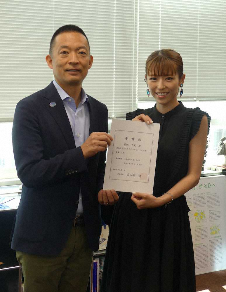 タレントの若槻千夏(35)が3日、東京・渋谷区役所で行われた「子育てネウボラアンバサダー」委嘱式に出席した。妊娠、出産、子育てを自治体が支援する仕組み。