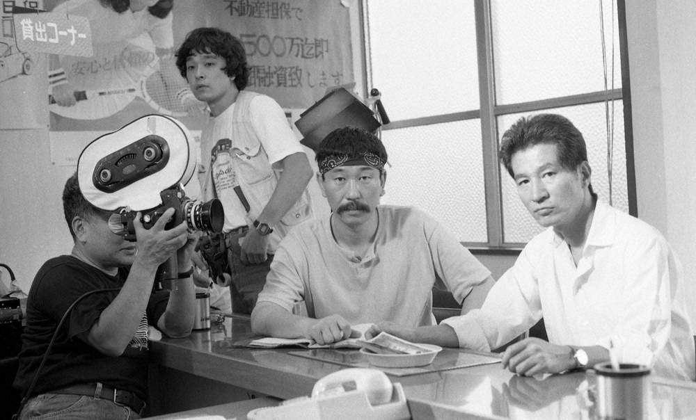 1982年、クランクインした映画「十階のモスキート」の撮影現場風景。中央が崔監督、右が内田裕也さん