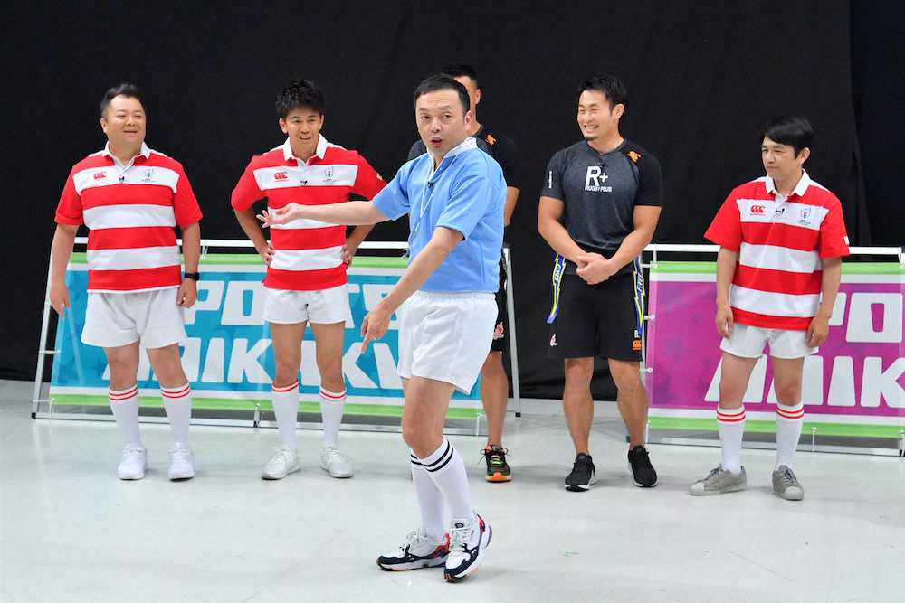 MC・武井壮(46)らがラグビー日本代表への応援の思いを込めて、代表公式ウェアを着用。だが、中川家・礼二だけはレフェリーのウェアを着用。番組冒頭で、MCのブラックマヨネーズ・小杉竜一(45)から紹介されると、礼二は恒例のネタ「ノッコーン。スクラム」で笑いを誘った。