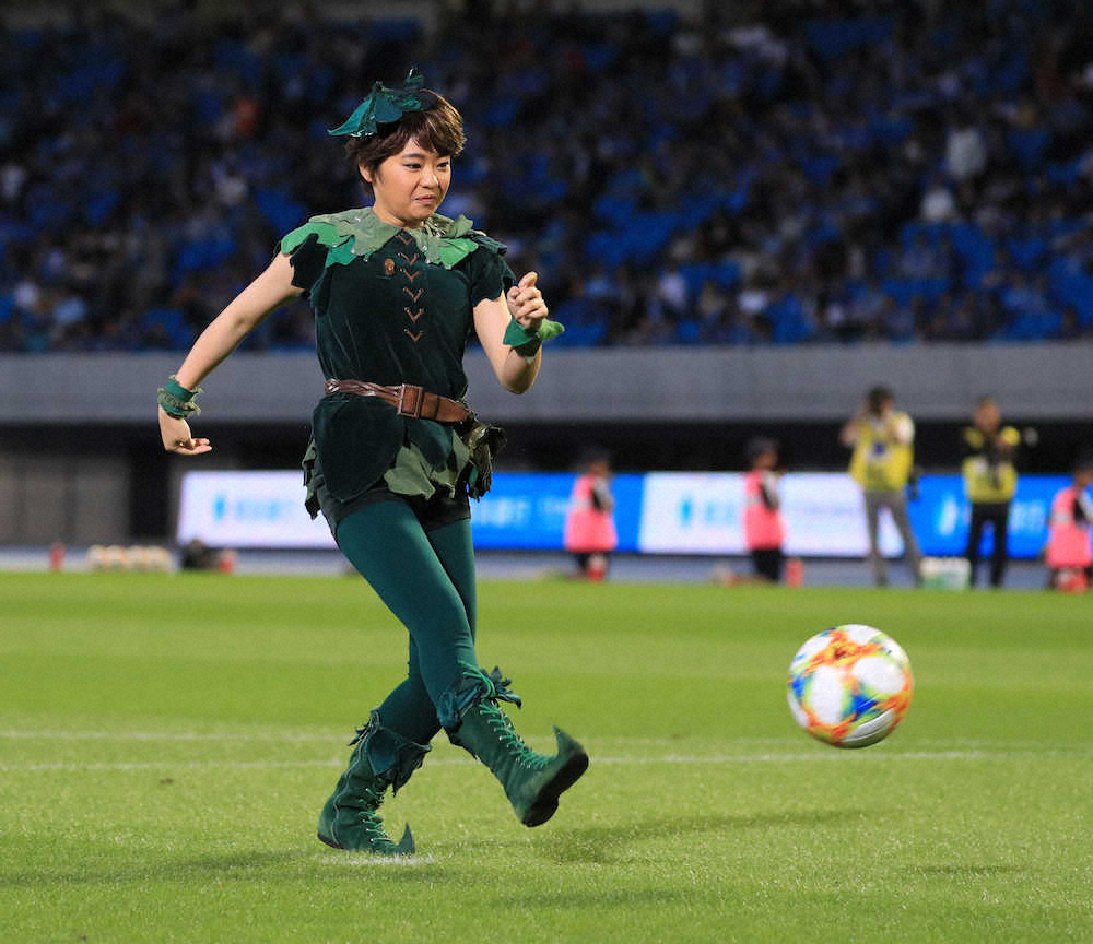 ミュージカル「ピーターパン」(スポニチ主催)で10代目ピーターパンを演じる吉柳(きりゅう)咲良(15)が14日、神奈川・等々力陸上競技場でのサッカーJ1・川崎F対札幌戦で始球式を行い、見事ゴールを決めた。自身初のサッカー始球式に「凄い緊張したが、温かい声援に囲まれてうれしかった」と安どの表情。サポーターを前に「今年は川崎でピーターパンをやります!ぜひ見に来てください」とPRした。