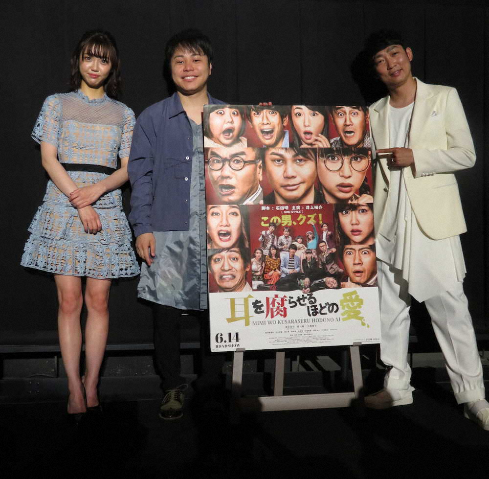 お笑いコンビ「NON STYLE」の井上裕介(39)が15日、大阪市内で初主演映画「耳を腐らせるほどの愛」(監督豊島圭介)の舞台あいさつに立った。