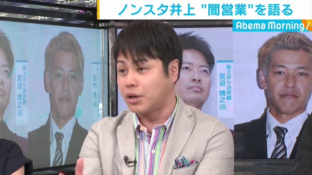 お笑いコンビ「NON STYLE」の井上裕介(39)が5日、AbemaTV「AbemaMorning(アベマモーニング)300回突破記念スペシャル」(金曜前7・00)に出演。暴力団幹部の会合で闇営業をしたとして無期限謹慎処分になった吉本興業のお笑いコンビ「2700」の八十島宏行(35)と常道裕史(36)について言及した。