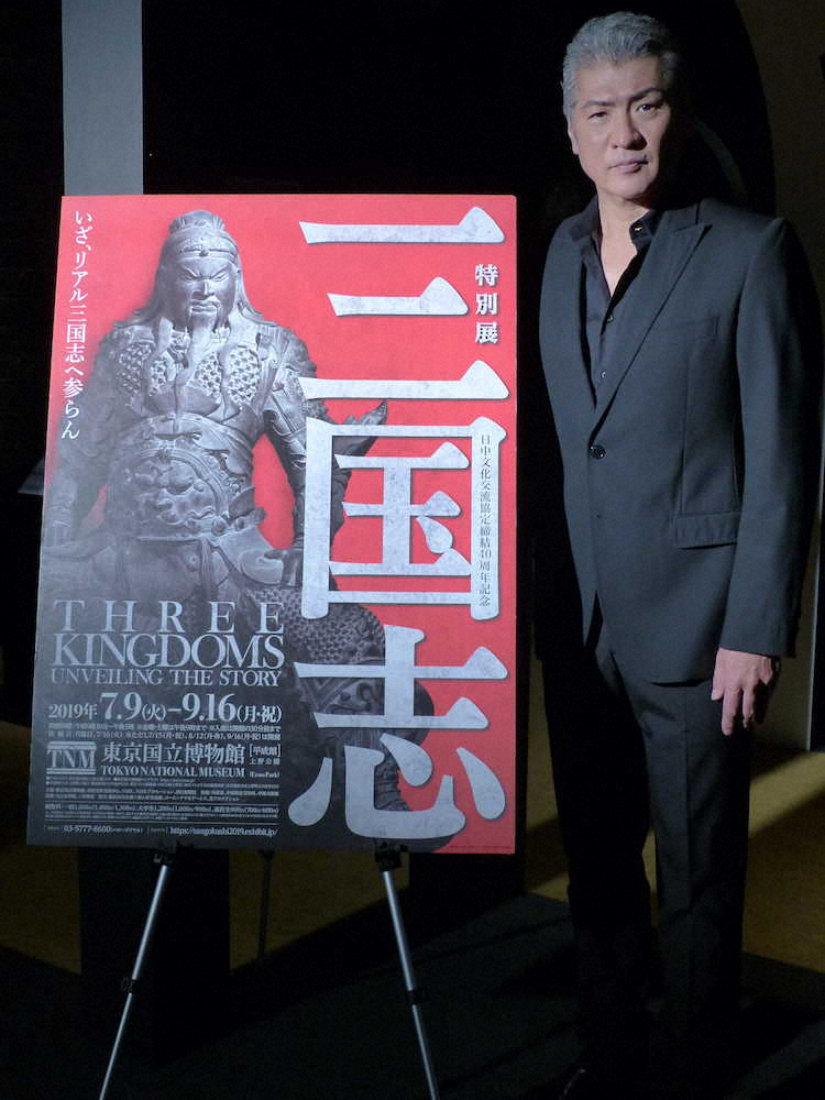 芸能界きっての三国志通で、同展の音声ガイドを担当。「人生最大の岐路に立った30代の頭に、指南書みたいなものを探したいと思って読み始めたらハマっちゃった」と出合いを語り「三国志はファンタジー。夢の中に入って楽しんでもらえるよう頑張ってしゃべりました」とPRした。