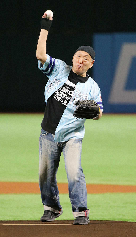 セレモニアルピッチに泉谷しげる(71)が臨んだ。鷹の祭典ユニホームを羽織って登場。「フォークだけに、フォークを」と宣言通り、フォークボールを投げ込んだ。白球はツーバウンドしてコロコロ…。マウンド上で地面を叩いて悔しがった。