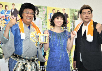 お笑いコンビ「サンドウィッチマン」の伊達みきお(44)と富澤たけし(45)が26日、東京・江東区のららぽーと豊洲で開かれた歌手の水森かおり(45)とのコラボイベントに出席。デュエット曲「笑顔で遠回り」を初披露した。