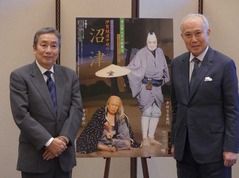 歌舞伎俳優の中村吉右衛門(75)と中村歌六(68)が「秀山祭九月大歌舞伎」(歌舞伎座、9月1~25日)の会見を行った。吉右衛門の祖父にあたる三世中村歌六の百回忌追善狂言を上演。