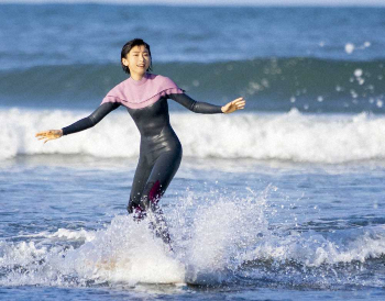 「1日3時間ぐらい練習していました。楽しくて楽しくて、陸に上がるのが嫌でした。またサーフィンしに宮崎に行けたらなと思うんですけど、当分は無理かもしれません」