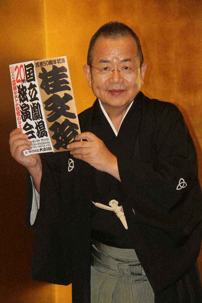 日替わりゲストを迎え、自身は古典から創作まで計40演目を披露する。所属の吉本興業の闇営業問題について「その話題も『スマホでイタコ』という演目に入れてある。アプリで、反社の人に会うと警報が鳴る」とニヤリ。最後は「長いことやってますんで、いろんな時代を越えてきてます。台風一過、雨降って地固まるという気持ち」と貫禄を見せた。