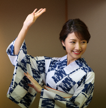 この日は“日本舞踊”を語るため、その雰囲気を伝えようと格子柄の涼しげな浴衣に橙(だいだい)色の帯を締めて現れた。父親に選んでもらった自慢の逸品だ。踊りとの最初の出合いは幼稚園生の頃だった。5歳年上の姉が習っていた影響で興味を持ち、自身も五大流派の一つである藤間流に師事。以来、週2回の稽古を続け高校3年生まで通い続けた。中学生の時には名取となり「藤間友梨恵」という芸名を手に入れるほどの腕前。年に2回ある大きな発表会にも参加した。