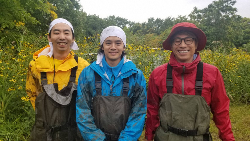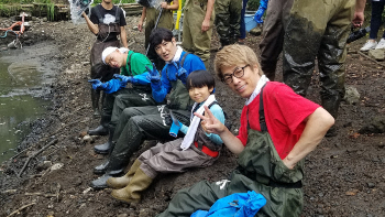 池の水を抜き、いざ生物捕獲…と思いきや、ロケの直前に大雨が降るハプニング。急きょ魚ではなく、水生昆虫の捕獲にロケ内容を変更し、池松と柄本の“仲良しコンビ”が奮闘する。