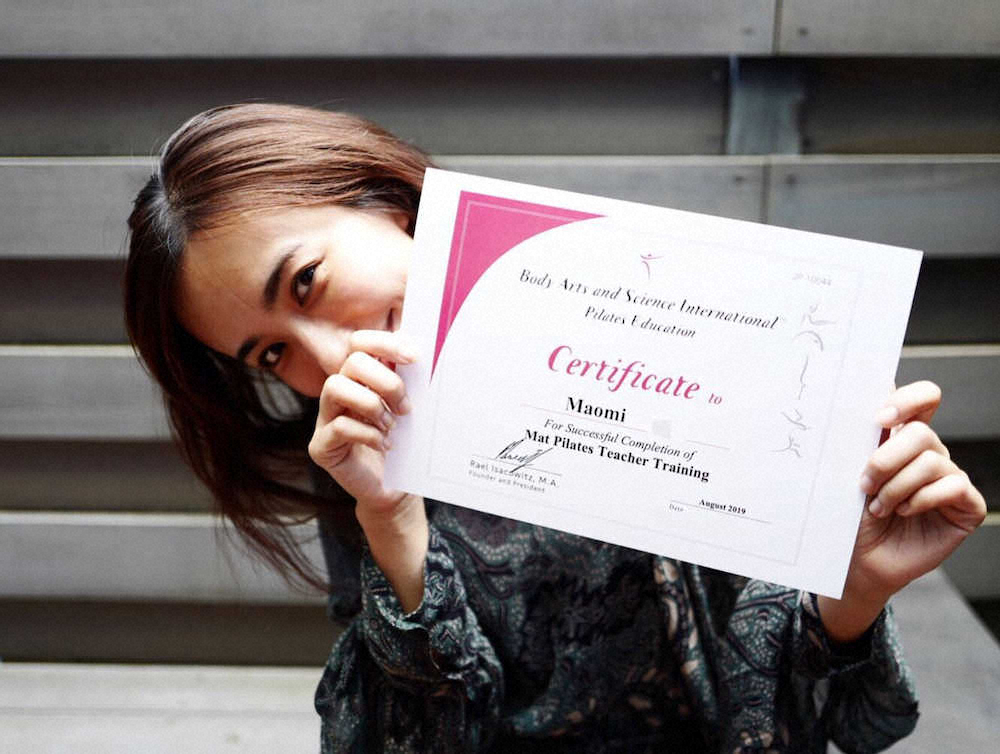 優木は「証書が届くと、さらに気持ちが引き締まります! 引き続き、マシンピラティスのインストラクターに向けての勉強も頑張ります。これからマットグループのクラスもたくさん持っていこうと思っていますので、ピラティスインストラクターとしての優木まおみもよろしくお願いします」とコメントしている。