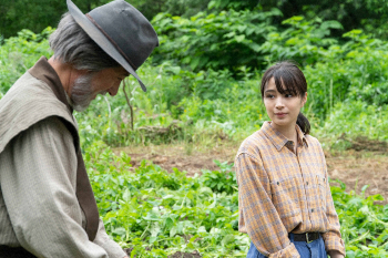 連続テレビ小説「なつぞら」第156話。荒れ果てた天陽の畑を訪れ、靖枝(大原櫻子、右)を手伝うなつ(広瀬すず)と泰樹(草刈正雄)(C)NHK