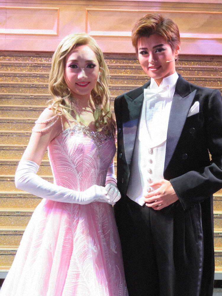 本番前にはトップスター・珠城りょうから「完璧にやろうと思わず、お客様は一生懸命やってる姿を見たいんだから」と背中を押され、変なプレッシャーを感じずにいられた。途中、ヘリコプターセットに乗ってのフライングシーンも「絶叫系は苦手なのですが、今日は壮観でした」と笑顔を見せた。