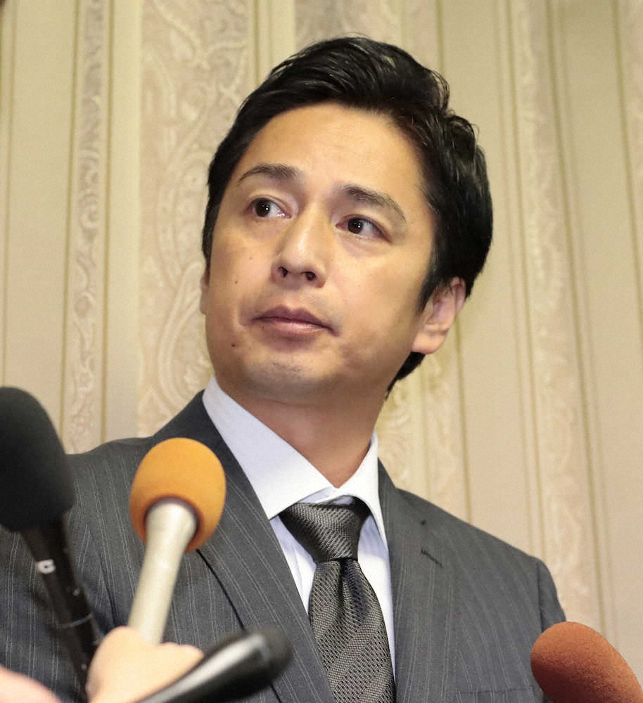 囲み会見で報道陣の質問に答える徳井義実(撮影・後藤 大輝)