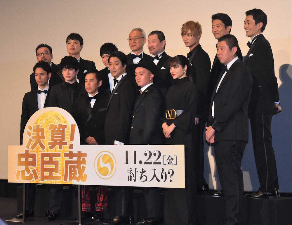 俳優の堤真一(55)、「ナインティナイン」の岡村隆史(49)、関ジャニ∞の横山裕(38)が27日、都内で映画「決算!忠臣蔵」(11月22日公開、監督中村義洋)のワールドプレミアに出席した。