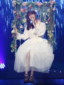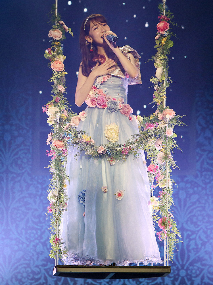 同所での公演は、12年7月に初のソロコンサートを開いて以来、7年4カ月ぶり。「私が思うオトナのアイドル像」をコンセプトに、ミニスカートやロングドレス、ワンピースなど7パターンの衣装を披露。高さ7メートルの巨大ブランコに乗ってソロ曲「そっけない君」を歌うなど、見応えのあるステージングで全23曲を披露した。