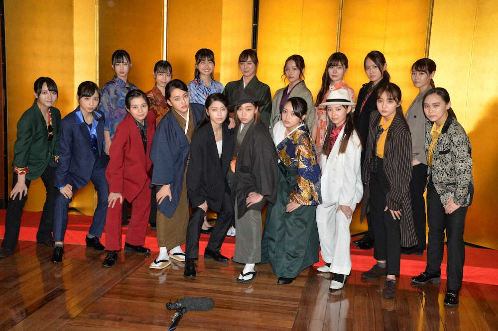 菅原文太さんや梅宮辰夫、松方弘樹さんらが出演した人気任侠映画シリーズの舞台化で、激しい殺陣や指詰めなど残虐なシーンもほぼ完全に再現している。主人公の広能昌三を演じる横山由依(26)は、メンバーの苦労を一番近くで見てきただけに「楽しくケガなく終えられたらと思います」と、祈るように話した。