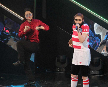 ≪村重杏奈がリーチ・マイケルに≫「天国野郎」で村重杏奈(21)がラグビー日本代表のリーチ・マイケルに扮した格好で登場し、会場を盛り上げた。また、今回の本番前には「MCで話すことを考えてこよう」と後輩に語りかける真面目な一面もあったという。ただ、「真剣に注意してたのに、(涙サプライズで使う)この帽子をずっと、かぶってた」と話し、笑いを誘っていた。