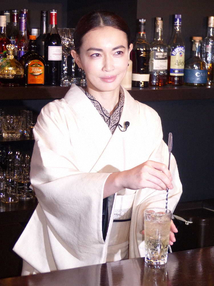自身発案の企画。「今まで(ママは)やったことないです」と慣れない手つきでハイボールを混ぜると、あでやかな和服姿に報道陣はため息。「芸能界の仕事がなくなったらやろうかな。ちょっとお値段は高めに?」と上機嫌で話した。写真集は大人っぽさと露出を兼ね備えた色気たっぷりの作品。「匂いがしそうな写真にこだわった」と妖艶にほほ笑んだ。