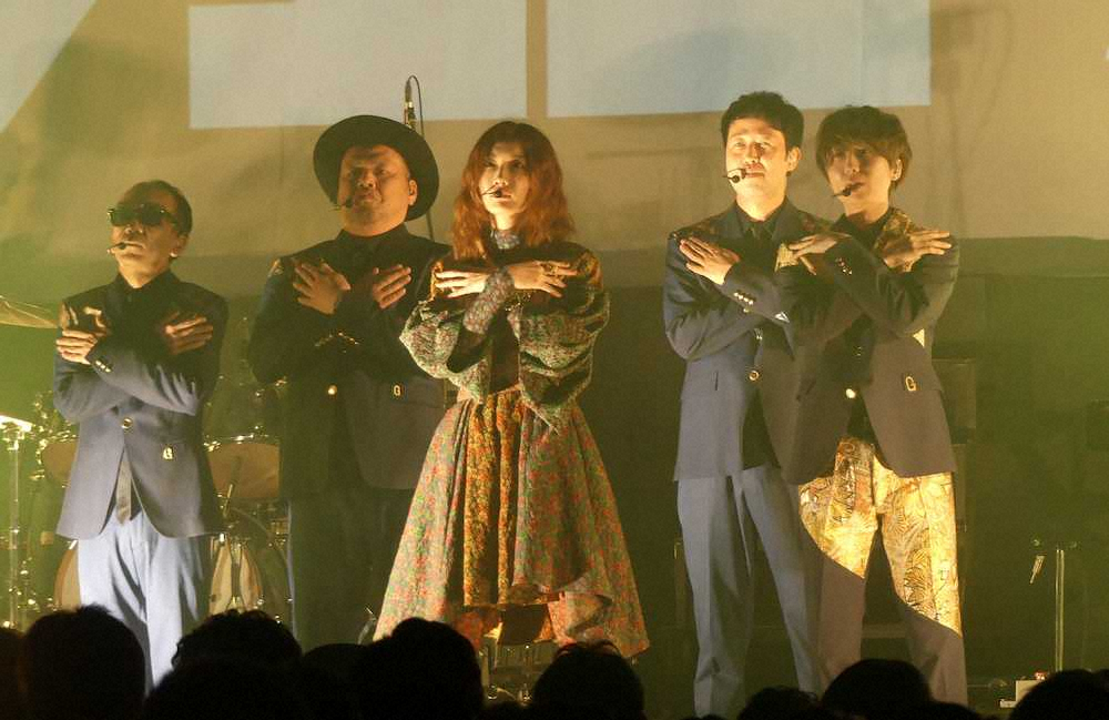 女性6人組「BiSH」のアイナ・ジ・エンド(年齢非公表)も駆けつけ、コラボ曲「不便な可愛げ」など全7曲を披露。またプライベートで来ていた千鳥のノブ(39)がサプライズで壇上に登場。「見に来ただけなのに(川谷から)出ろと言われたんじゃ~」と会場を盛り上げた。