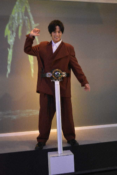 仮面ライダーシリーズの変身ベルト玩具のイベント「THE HENSHIN COMPLETE SELECTION MODIFICATION EXHIBITION VOL.1」を開催するのに先立って6日、玩具会社のバンダイが都内でスペシャル前夜祭を行い、仮面ライダージオウ/常磐ソウゴ役の俳優・奥野壮(19)と、仮面ライダーゼロワン/飛電或人役の俳優・高橋文哉(18)が登場した。