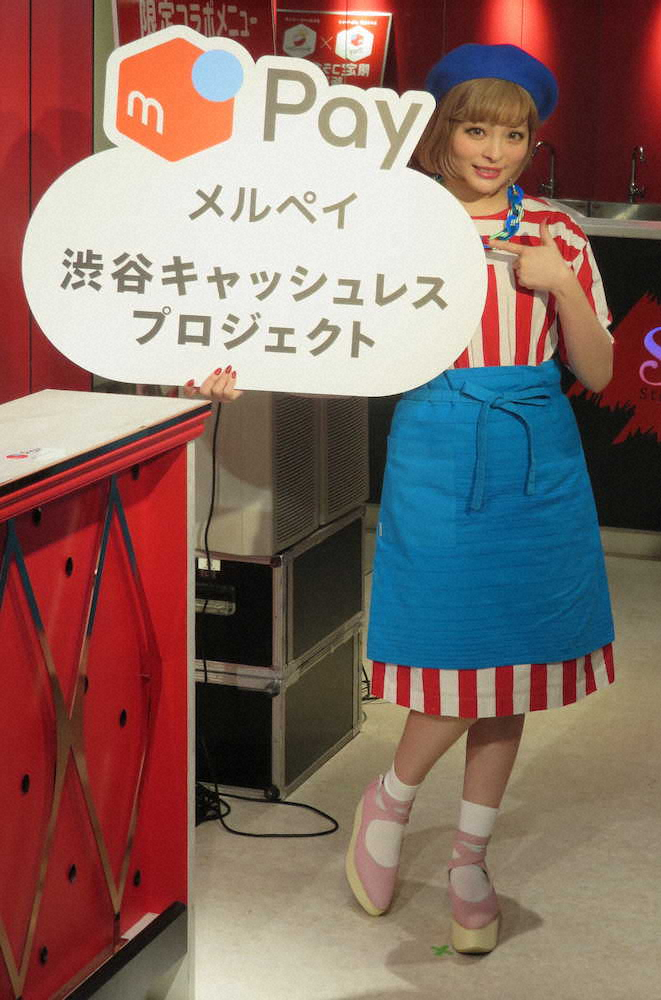 スマホ決済サービス「メルペイ」のPR企画。キャッシュレス会計に挑戦し「あっという間にできた」と利便性を強調。竹下通りには自身が載ったメルペイの広告旗が並んでおり「竹下通りをジャックしているのがうれしい」と喜んだ。