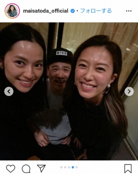 タレントの里田まい(35)が22日、自身のインスタグラムを更新。女優の中村アン(32)との2ショットを公開したほか、2人の間から“ひょっこり”夫のヤンキース・田中将大投手(31)が登場するショットも合わせてアップした。