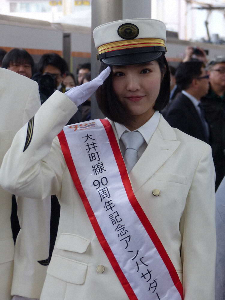 ハロー!プロジェクトの新人グループ「BEYOOOOONDS(ビヨーンズ)」の一岡伶奈(20)が25日、東急大井町線90周年を記念し、同線の大井町駅で一日駅長を務めた。