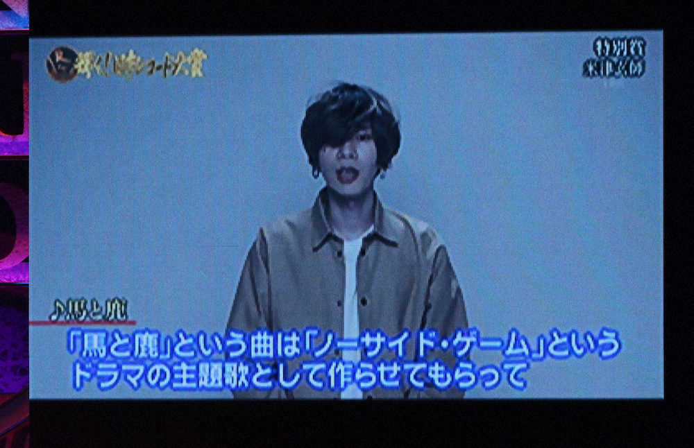 VTR出演した米津は「馬と鹿」について「ストイックに日々切磋琢磨して逆境の中を突き進んでいく登場人物たちの心情を表現できる曲をつくれたらなと思いながらつくりました。ラグビーW杯もあって、自分の手を離れていろんな人まで届いた曲になってくれたなあと思いました」とコメント。