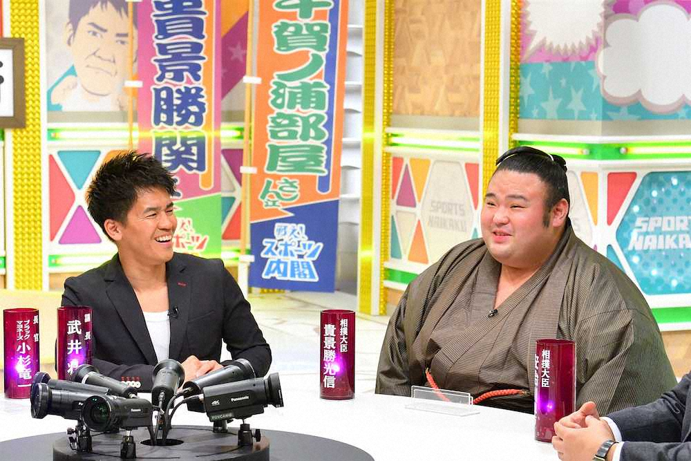 MBSテレビ「戦え!スポーツ内閣」(水曜後11・56)の8日放送は大相撲の大関・貴景勝光信(23)にスポットを当て、MCの武井壮(46)、小杉竜一(46)らとトークを繰り広げる。