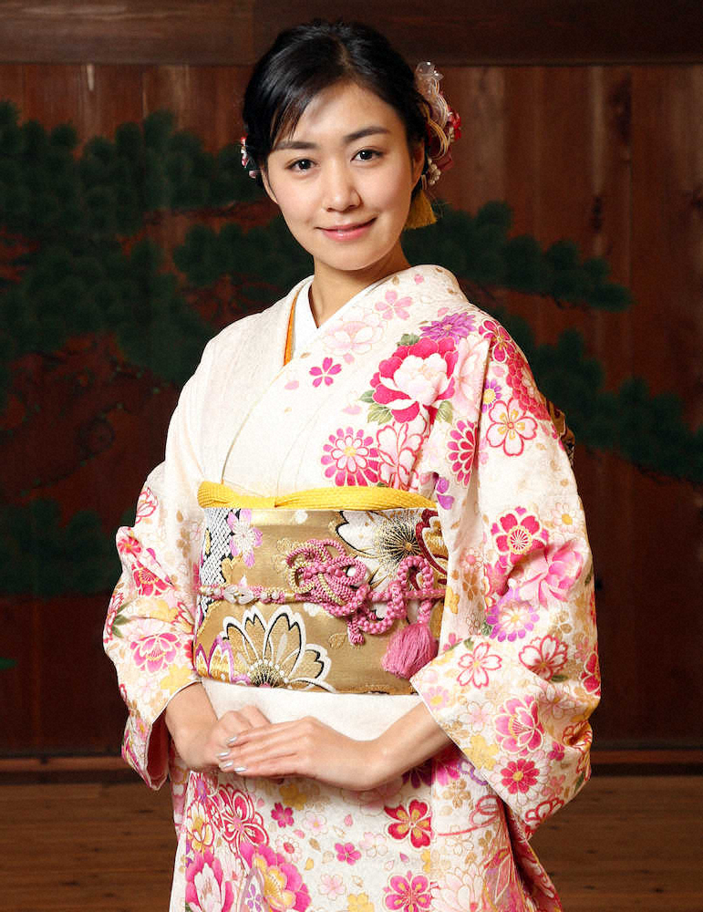 着物姿を披露する中村真優さん(撮影・久冨木 修)