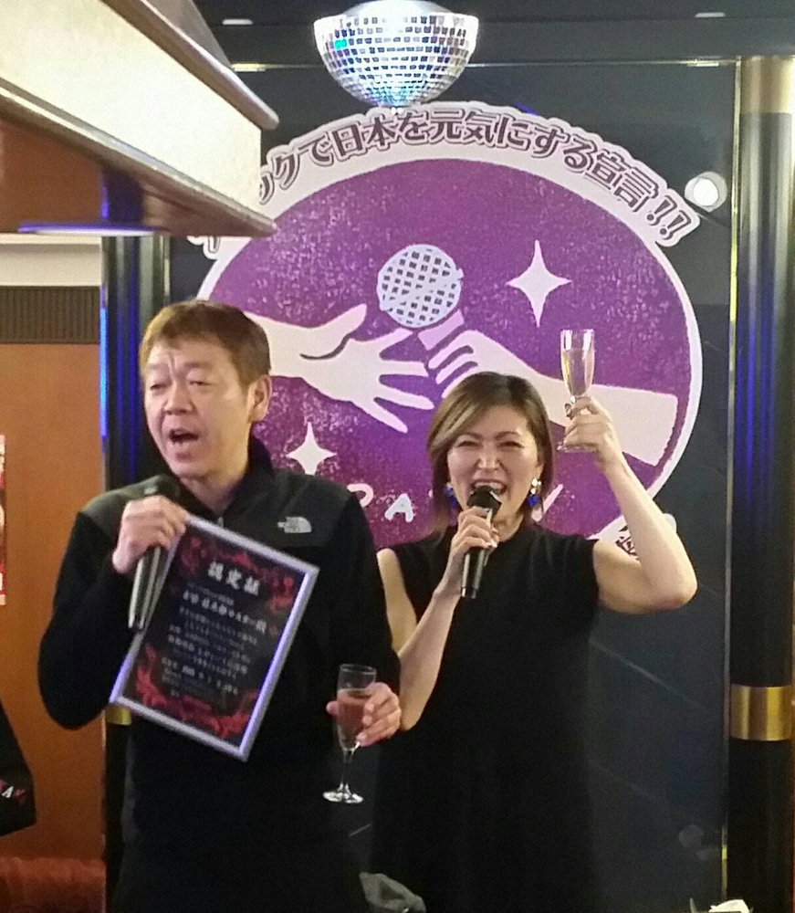そこに駆け付けたのは、「KANAの夜キャン~レディース応援隊100人できるKANA?!」と銘打って、2018年5月から、全国のスナックをめぐりキャンペーンを続けてきたテイチクレコード歌手のKANA。北は北海道から、南は長崎まで、全国99人のママさんに認定証を授与してきた。