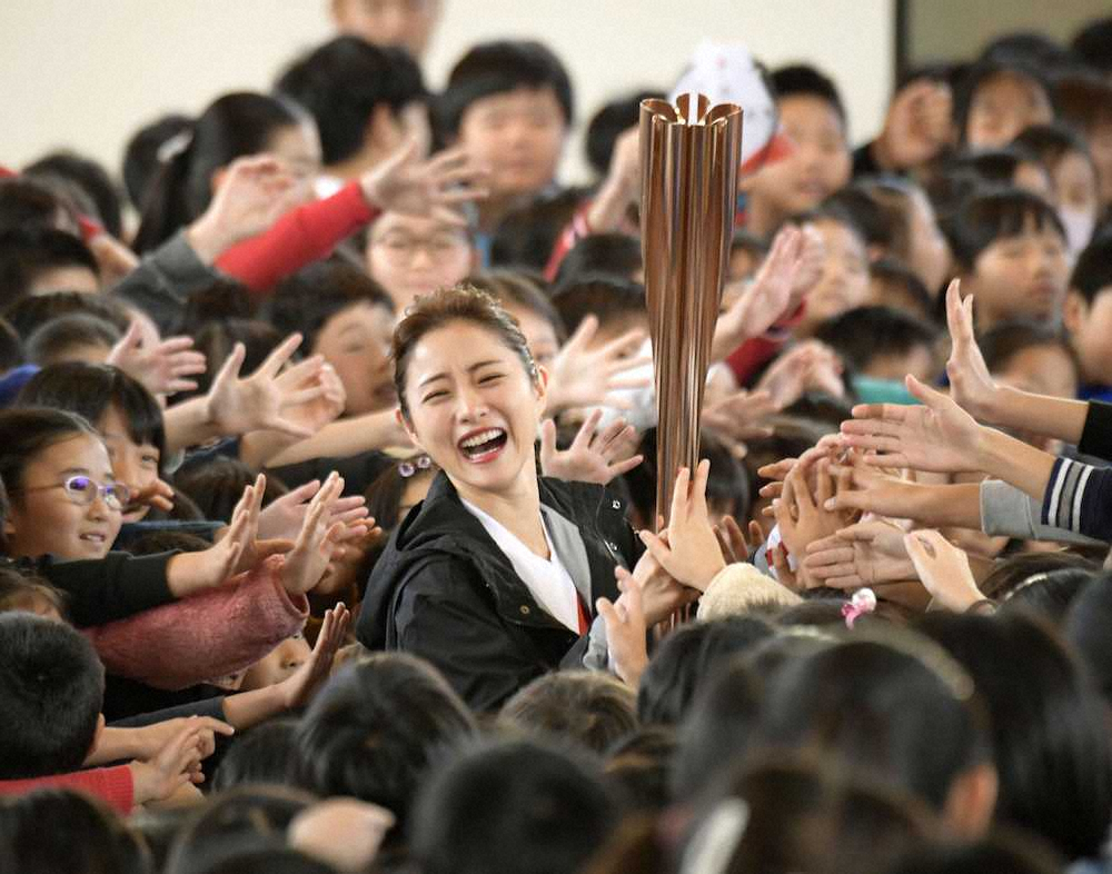 聖火リレーアンバサダー石原さとみ 小学校訪問「大切な人と応援に」