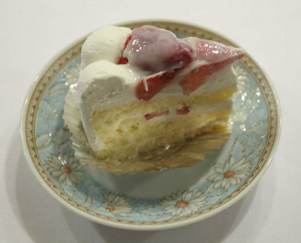 渡辺王将は、練乳がけのイチゴと甘さ控えめ生クリームで仕上げた、地元の洋菓子店「ベルジュ」のケーキ「イチゴミルク」とホットコーヒー。
