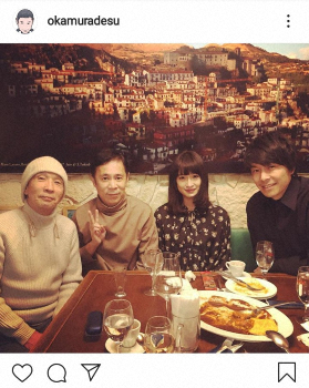 岡村は「ついに!」と書き出し「光秀さん 駒さん 東庵先生 菊丸」とつづって投稿。同ドラマで主役・明智光秀を演じる長谷川博己(42)、医師・望月東庵役の堺正章(72)、光秀が京で出会う娘・駒役の門脇麦(26)と食事中の写真をアップした。