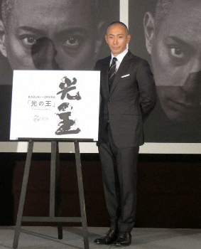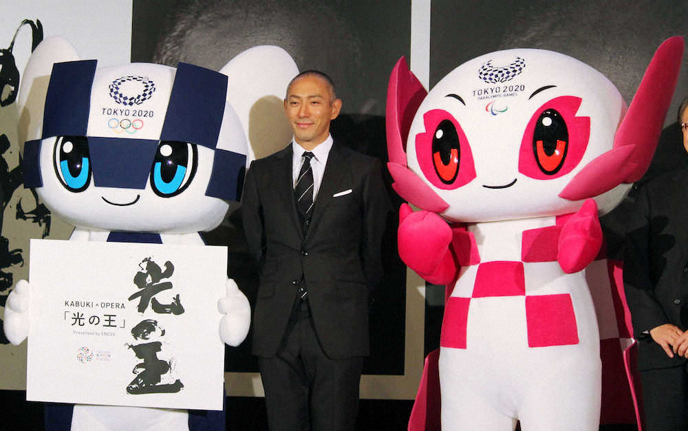 歌舞伎俳優の市川海老蔵(42)が29日、都内で東京五輪・パラリンピックの公式文化プログラムとして上演される「光の王」(東京体育館、4月18日)の会見に出席した。