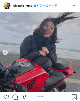 日テレ・久野静香アナ 単車とのショットに「髪の毛が逆だっても美人」「格好いい!」