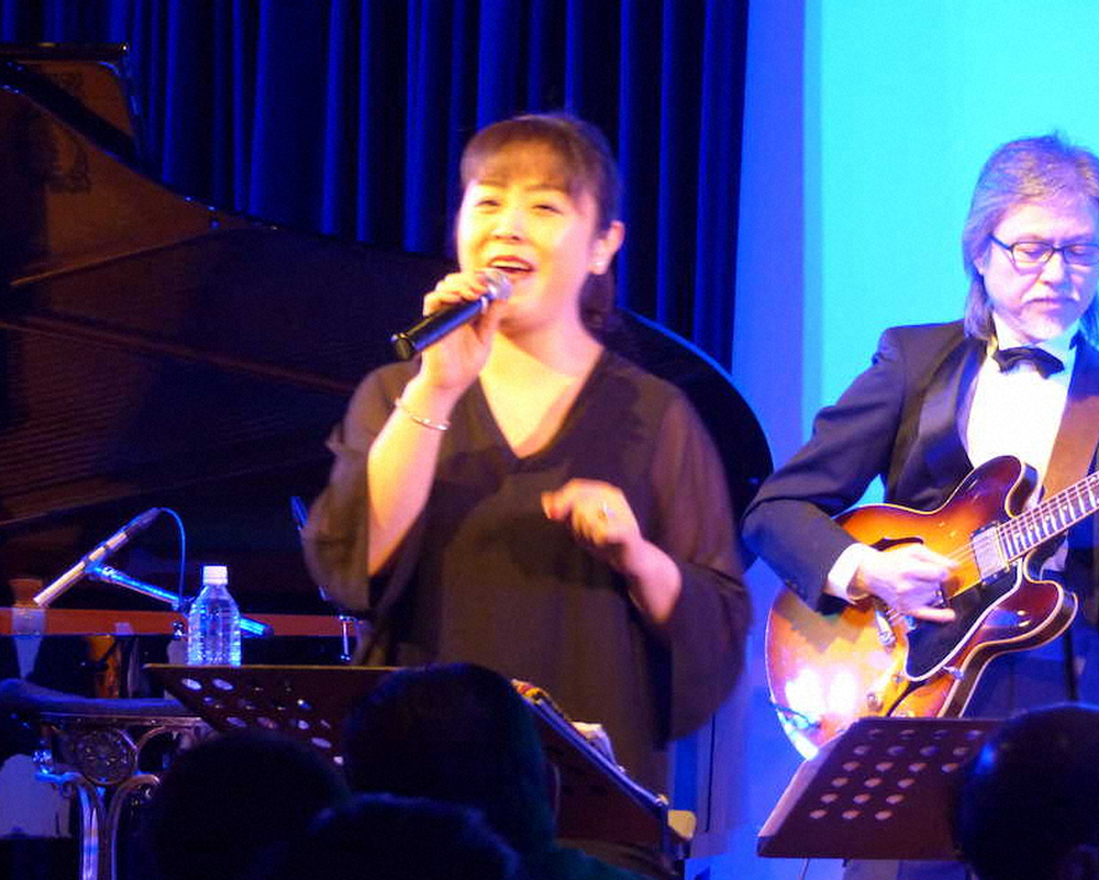 7人組のコンボ「東京エキゾチカ」の演奏で真由子は朝丘さんの曲「別れのスナック」など10曲を熱唱。「母が背中を押してくれている。これからも歌い続けていきます」と誓った。